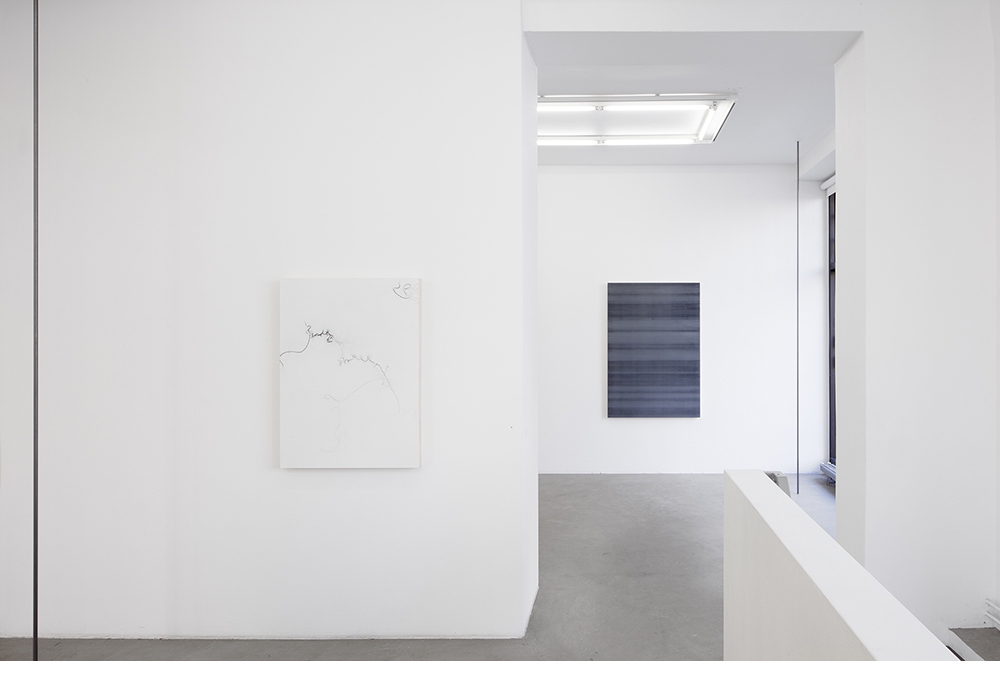 At the exhibition at Anhava Gallery the work is installed in relation to the succession of spaces and their windows to the streets. The lines in the works and on the walls continue in the spaces in the form of steel poles. New works where the lines are not any longer tensed, but loose traces, are added to the body of works.