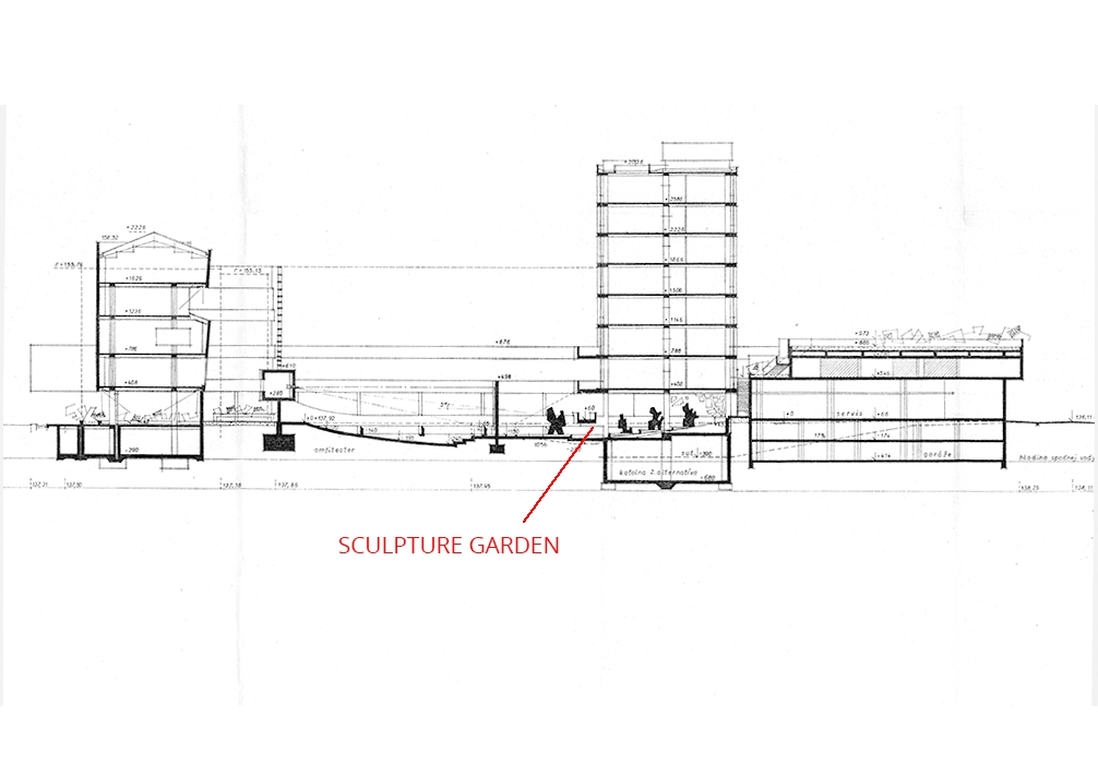 For the Slovakian pavilion in the Giardini, the project proposed a reconstruction of a part of the sculpture garden, which Vladimir Dedeček had planned for the Slovak National Gallery in Bratislava in the late 1960s. Dedeček’s sculpture garden was partly built but never used, and the whole gallery remained a controversial building.